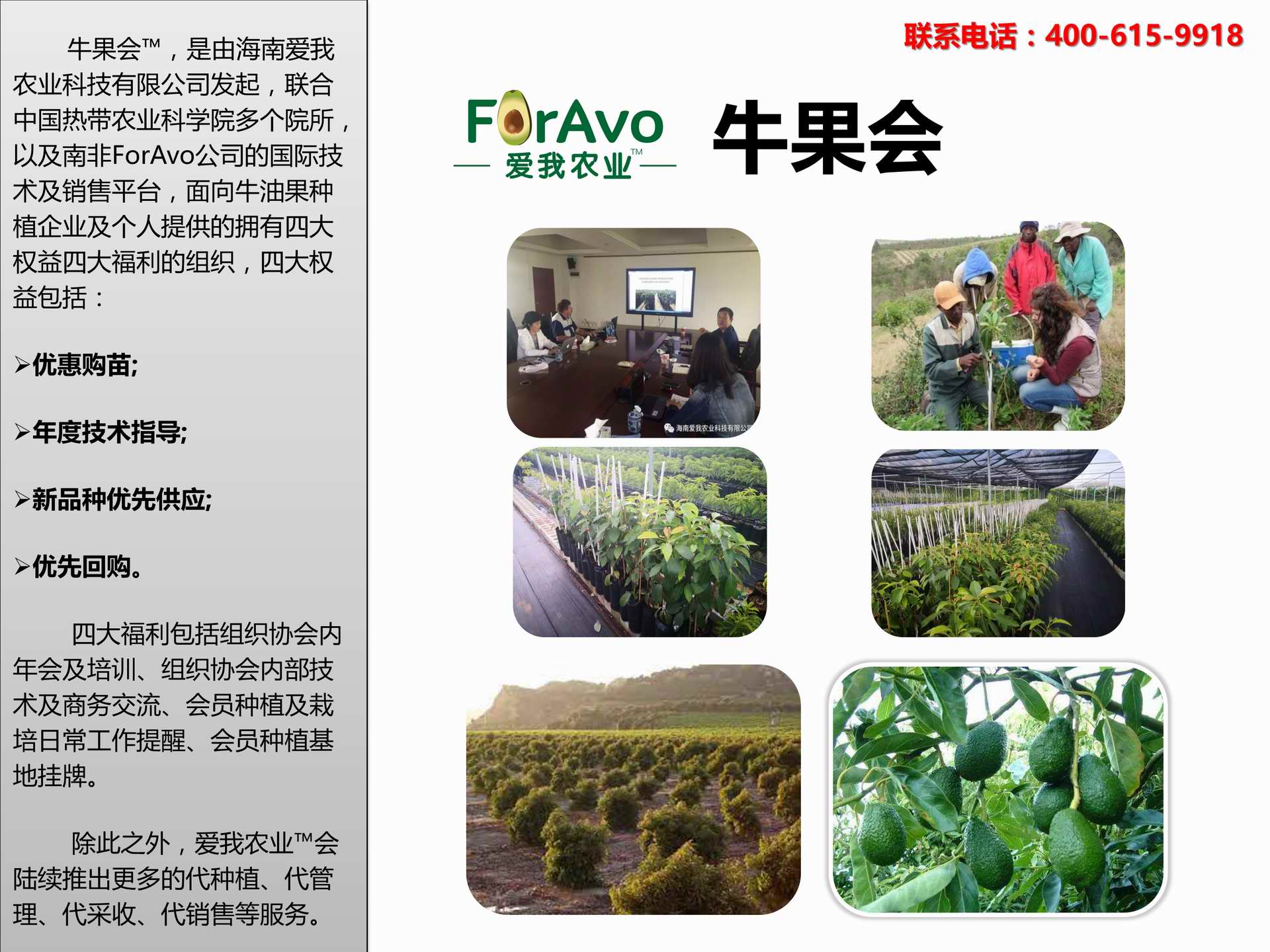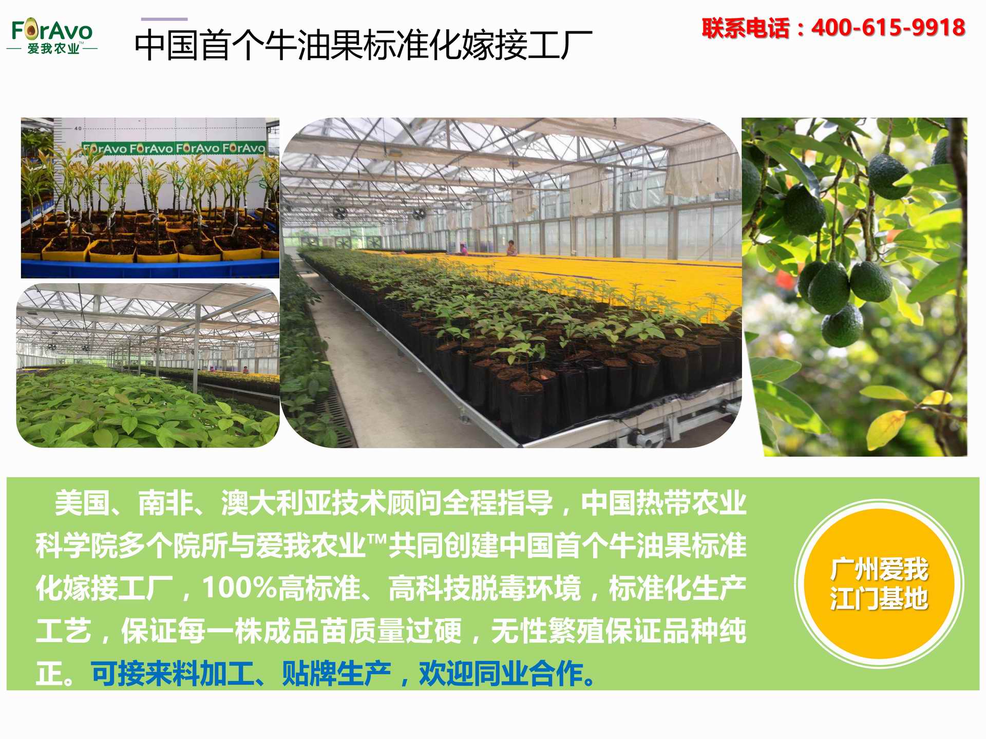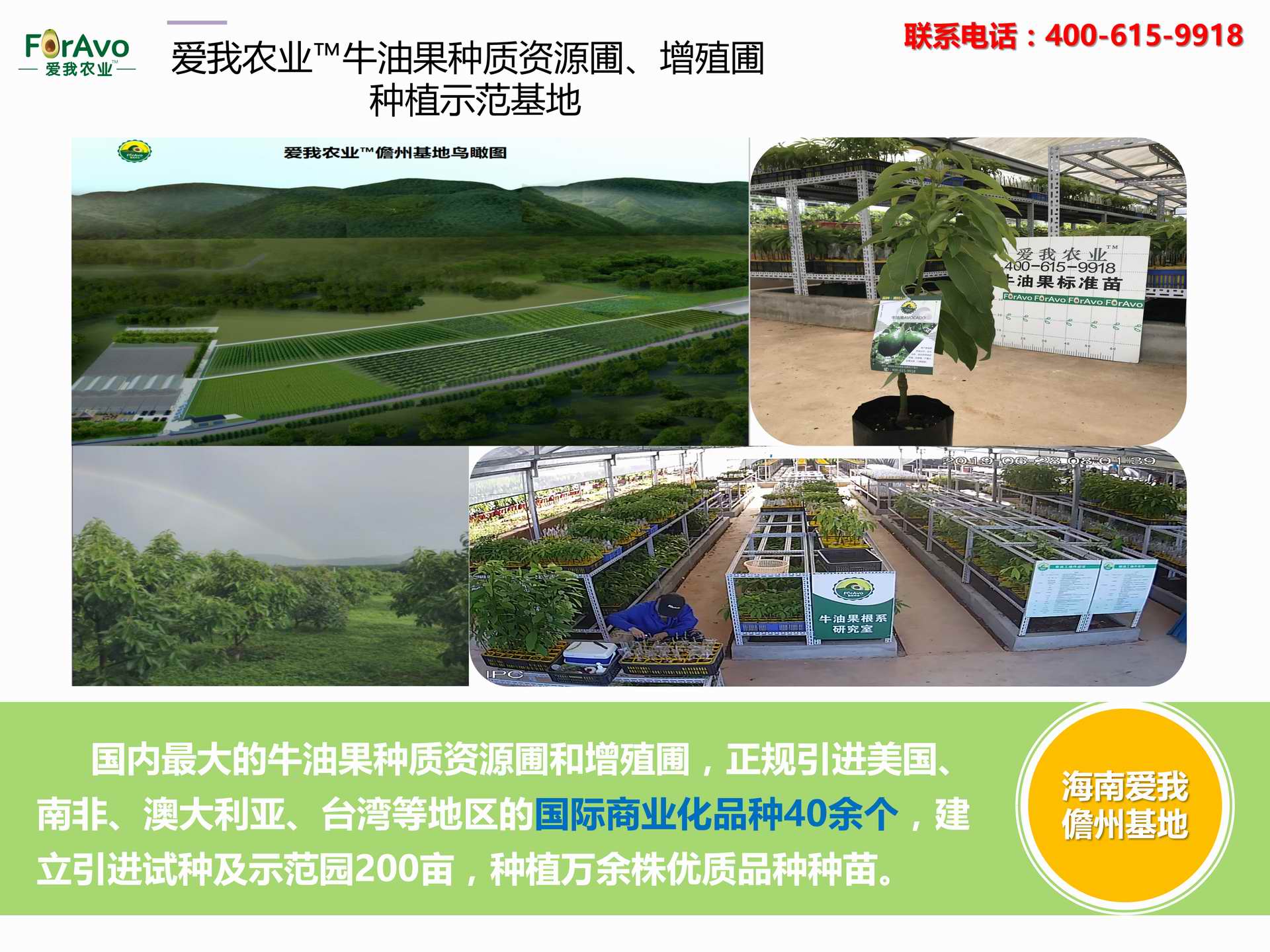 海南愛我農(nóng)業(yè)科技有限公司是一家綜合性的高科技農(nóng)業(yè)發(fā)展企業(yè),旗下愛我農(nóng)業(yè)TM致力于打造中國最大最強(qiáng)的牛油果種植企業(yè)。依托美國、南非、澳大利亞等擁有百年牛油果繁育、種植歷史以及產(chǎn)業(yè)鏈?zhǔn)袌龅膬?yōu)勢,開展牛油果種苗繁育、種植技術(shù),種植加盟、深加工等產(chǎn)業(yè)。結(jié)合中國市場,面向廣大苗圃基地、種植農(nóng)場、合作加工等企業(yè),推出的適合規(guī)?;?biāo)準(zhǔn)化的牛油果全產(chǎn)業(yè)鏈服務(wù)。 Hainan Foravo Agricultural Technology Co., Ltd. is a comprehensive high-tech agricultural development enterprise , dedicated to building the largest and most powerful avocado plantation enterprise in China. Relying on the advantage of avocado nursery, planting history, and the industrial chain over 100 years in the United States, South Africa, Australia, we are carrying out nursery, planting, proce...